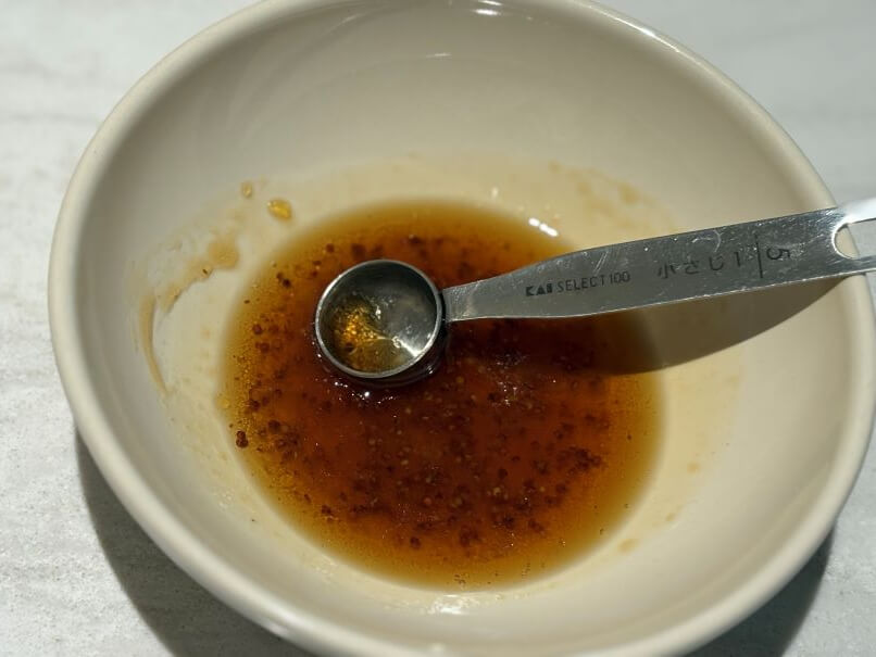- 양념 만들기: 간장, 참기름, 식초, 꿀(또는 올리고당), 겨자를 섞어 새콤달콤 짭조름한 양념장을 만듭니다. 기호에 따라 마늘을 넣거나, 매콤한 고춧가루를 추가해도 좋아요. 일반 식초 대신 발사믹 식초를 넣어도 좋아요